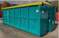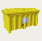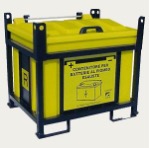 Contenitore per la raccolta differenziata di TUBI FLUORESCENTI. Realizzato completamente in polietilene, dotato di coperchio incernierato e di bisaccione flessibile interno, richiudibile ed asportabile. A base pallettizzata per agevolarne la movimentazione. Capacità 900 LT