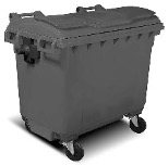 Cassonetto in polietilene ad alta densità da lt. 1100 con coperchio piano, conforme alle norme europee UNI EN 840 (UNI 10571/DIN 30700).