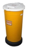 Contenitore dalla forma cilindrica verticale a fondo piano ideale per la raccolta di cartucce laser, inkjet e toner usato. Struttura realizzata in acciaio zincato anticorrosione colore giallo, materiale resistente e facile da lavare e disinfettare. Il contenitore è dotato di un comodo coperchio apribile tramite serratura a chiave, una bocchetta superiore auto scaricante antiprelievo colore nero e di una maniglia di sollevamento cromata.