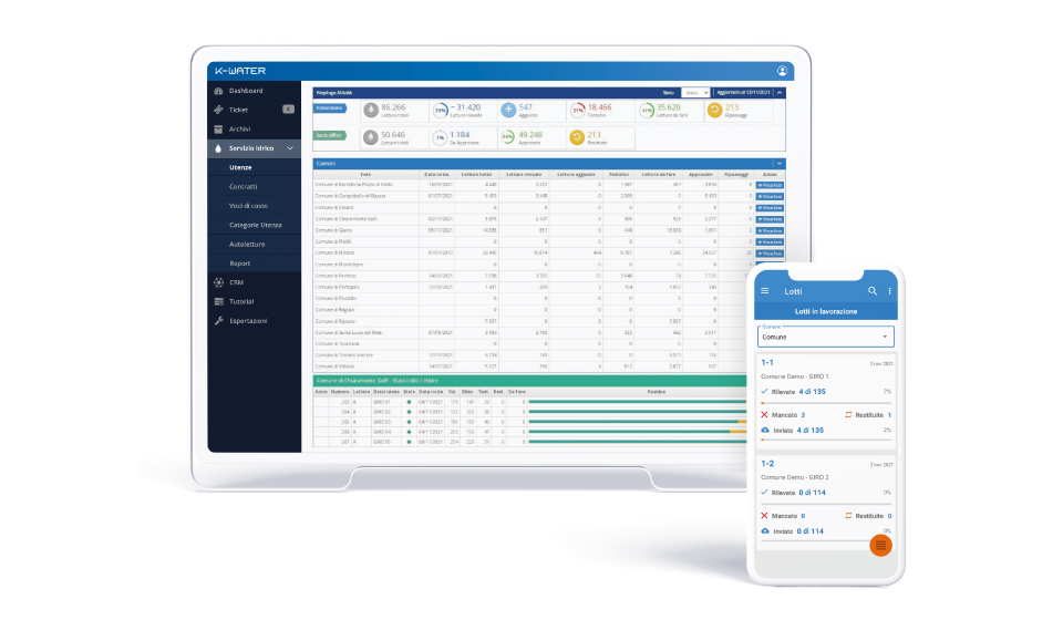 Creazione e gestione geo-referenziata su Portale Web dei giri territoriali dei letturisti. Aggregazione di uno o più giri territoriali in lotti logici in base ai consumi medi storici delle utenze come previsto dalla norma, e assegnazione attività ai singoli operatori. Invio notifi- che agli Utenti per la comunicazione del giorno e della fascia oraria per il relativo tentativo di lettura. Dal portale è possibile verificare e validare le letture acquisite dall’operatore tramite l’APP dedicata con certificazione fotografica e georeferenzazione. Analisi e statistiche dei consumi medi storici dell’utenza attraverso rappresentazione grafica. Predisposizione delle comunicazioni all’Autorità con i contenuti e le modalità previste dalla norma.
