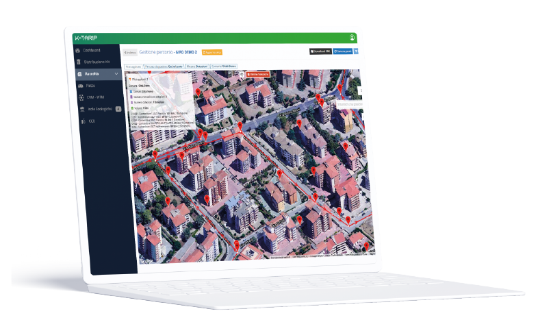 • Visualizzazione su mappa degli svuotamenti con indicazione del tipo di contenitore, anagrafica e immobile ad esso associato.